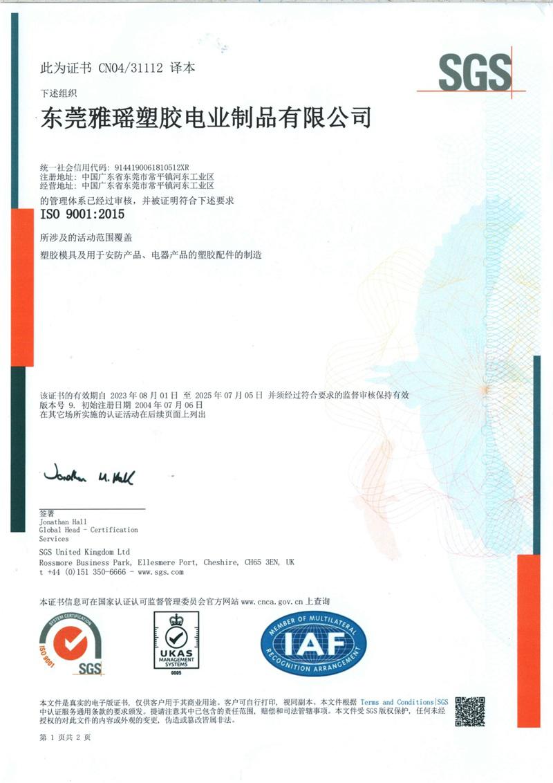 Latest Chinese version of ISO9001 certificate (2023-2025)